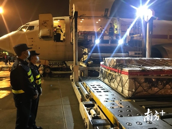 2月11日晚,一架从韩国首尔起飞的航空包机抵达深圳宝安国际机场。据悉,机上载有消毒液等1.5吨防疫物资,卸货后,该机将立即飞往上海浦东机场执行其他任务。