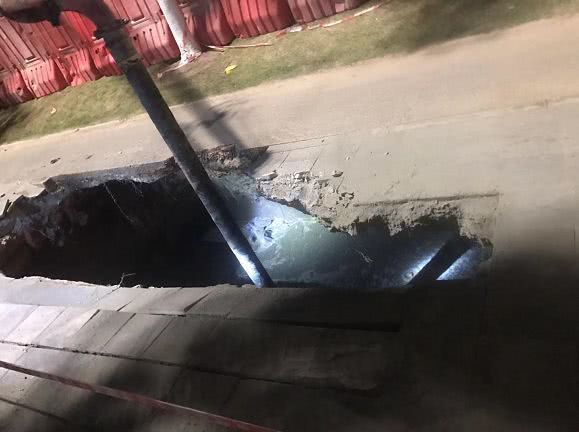 番禺区通报称,南村镇番禺大道宝骏汽车门前人行道于昨晚傍晚6点左右出现路面塌陷,面积约4平方米,塌陷点下方出现污水管断裂,无人员伤亡。