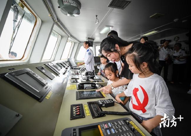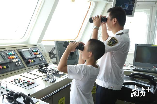 随着“海巡0925”鸣笛一分钟,活动正式拉开序幕,参加活动的中小学生按顺序上船,湛江海事局工作人员通过知识问答的方式向学生们普及航海知识和海洋知识,并在互动过程中介绍了“中国航海日”的历史沿革、现实意义和湛江在中国航海史上的重要地位。随后,工作人员依次带领学生参观船舶航行设备和应急救生装备,宣传暑期水上安全出行注意事项,学生随着船舶航行的脚步与海事人员的讲解,不断深入感受湛江大港口的发展与变迁,学生们在航行中纷纷表示,这次活动不仅仅对航海历史有了全方面了解,身为湛江人,更对湛江港这个汉代海上古丝绸之路始发港产生了满满的自豪感。